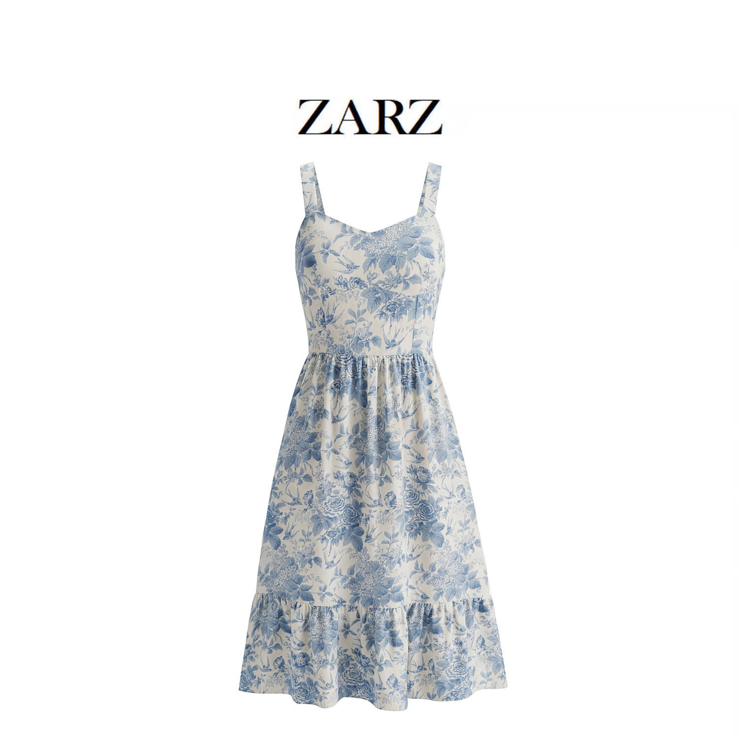 Floral Swallow Print Fitted Full Skirt Overalls Dress