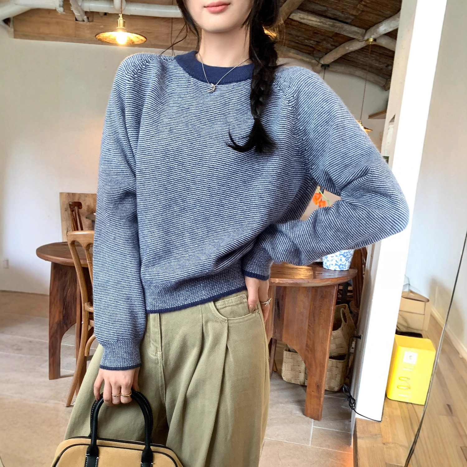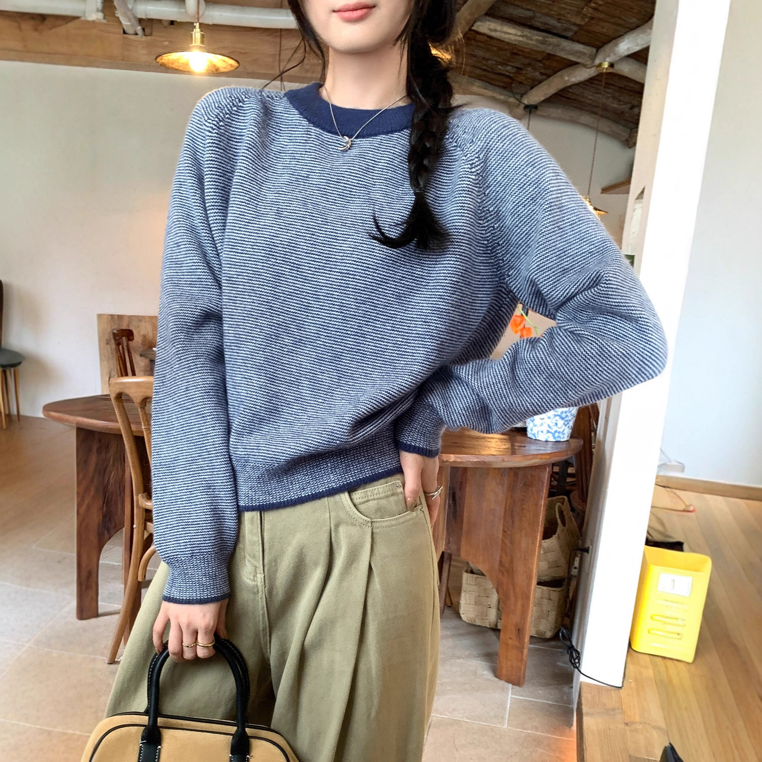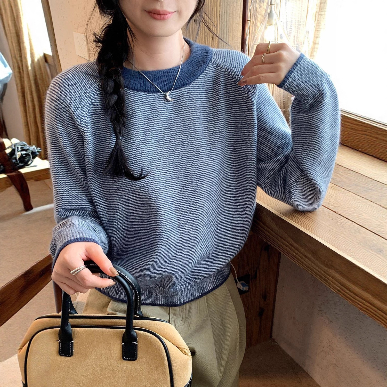 Retro Color-Blocked Stripe Knit Sweater for Women.