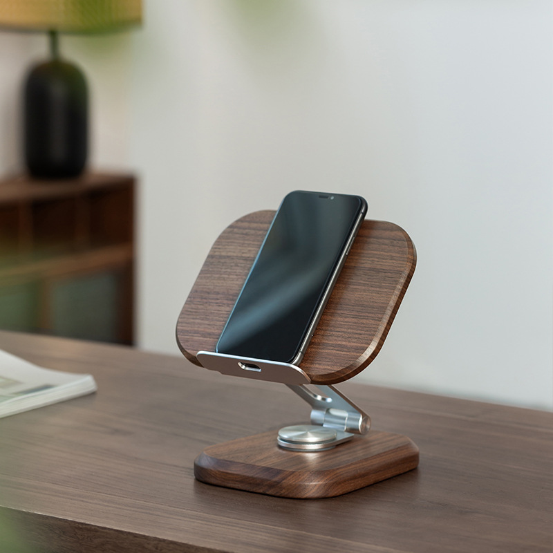 Walnut Wood Tablet Stand, Desktop Office Gaming Chicken Eating Adjustable Rotating Fixed Phone Stand, Wooden